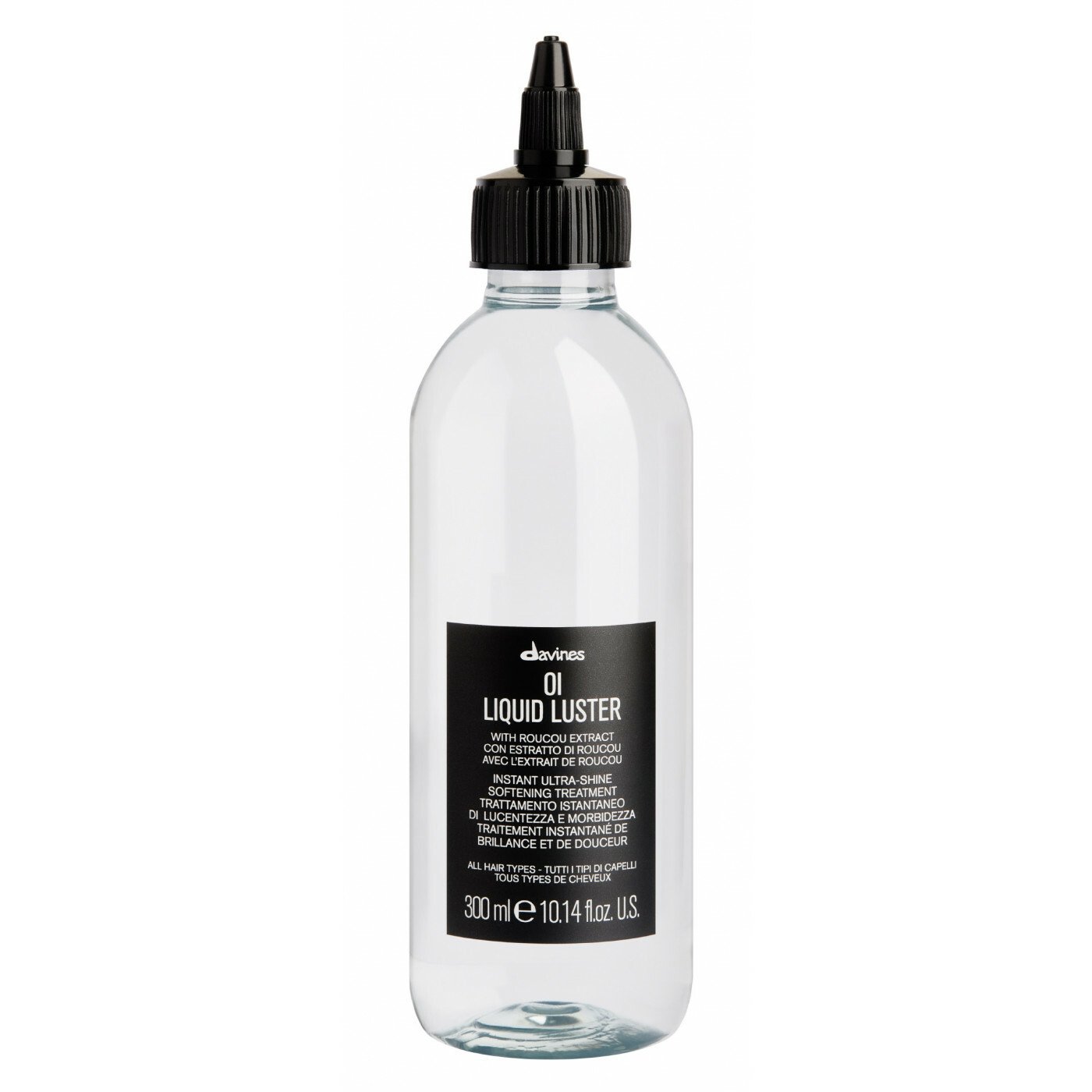 Weightless rinse off treatment for all hair types. Thanks to the innovative clear liquid texture the hydrating agents are direclty in contact with the hair fiber, for an instant illuminating effect and a smooth finish. Hair is immediately extra shiny, silkys and extremely soft, for a radiant glass-like finish
